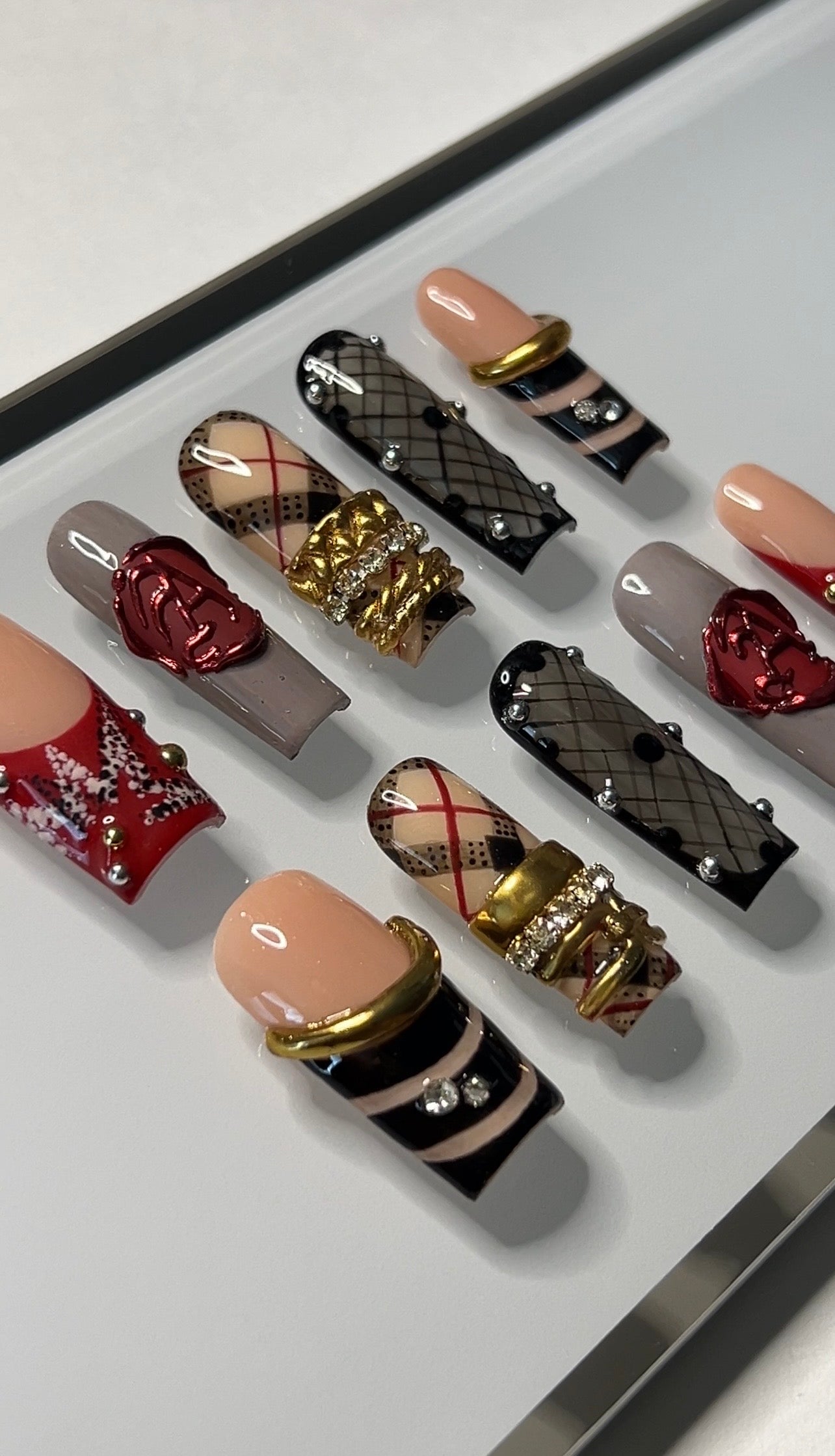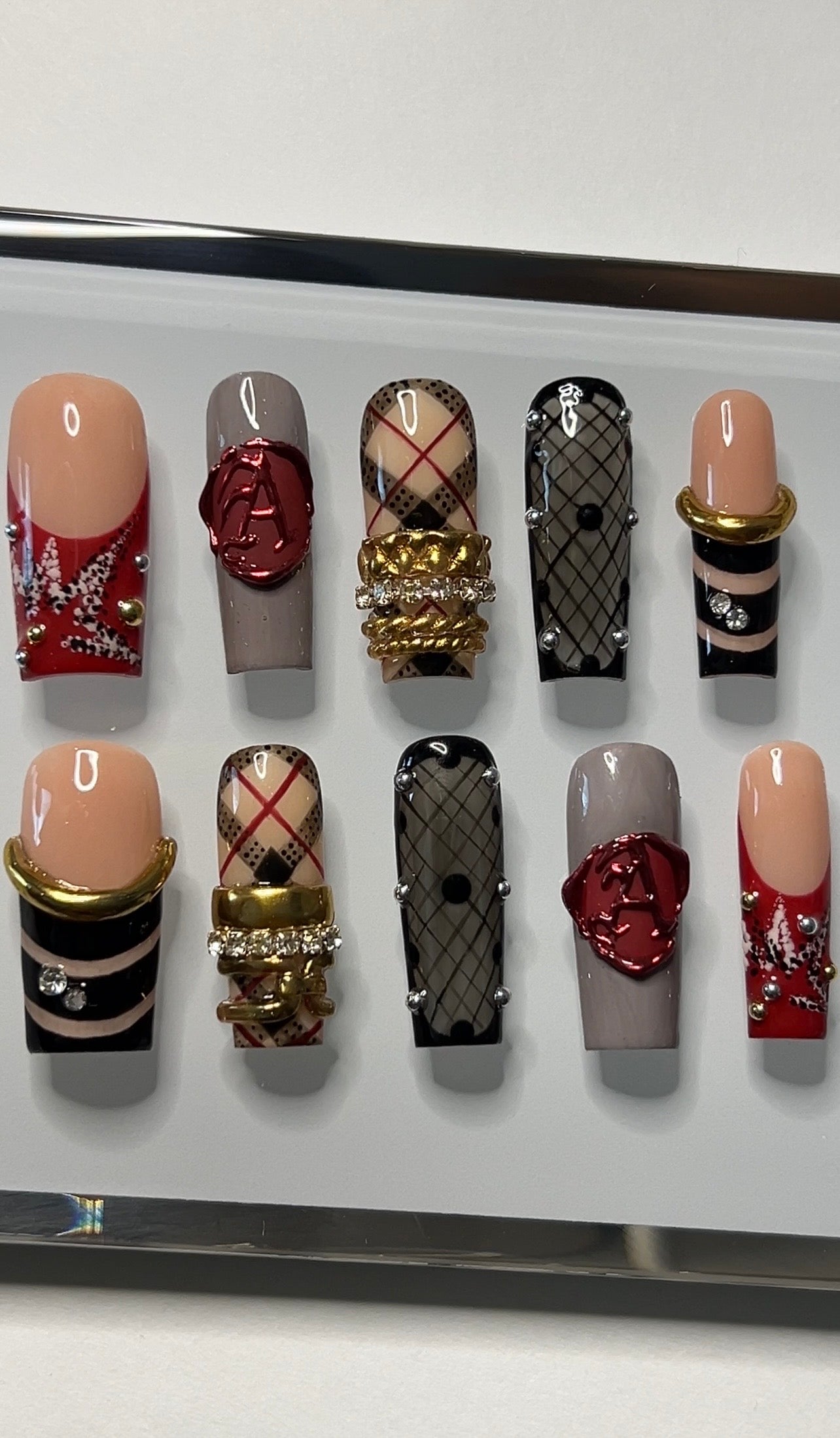 Every set comes with an application kit consisting of nail glue, nail file, buffer, cuticle pusher, alcohol pads, and adhesive tabs.