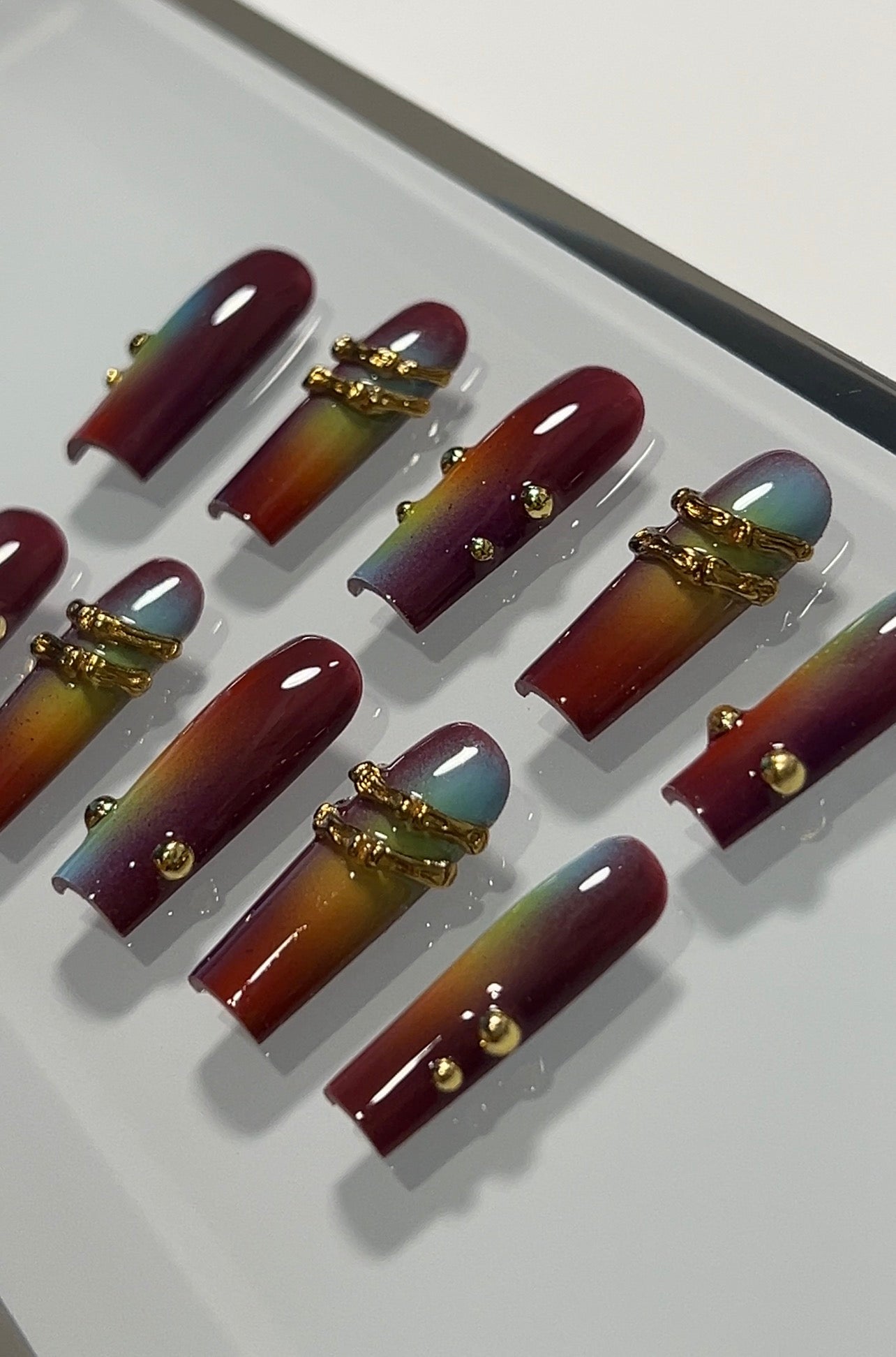 Painted gel base and light touches of airbrush to give a rainbow aura effect with hand sculpted bamboo bangles for a luxury feel ššŖ